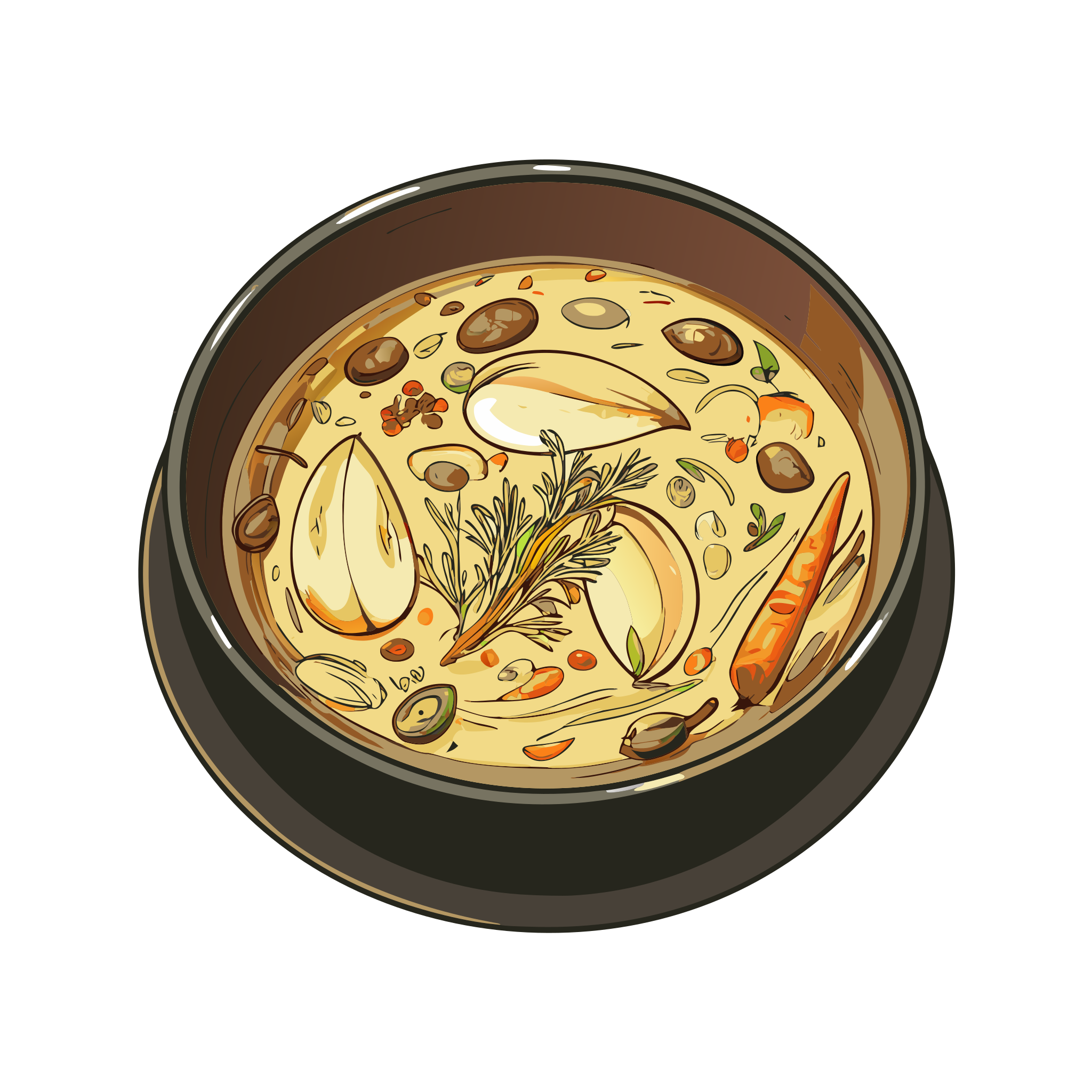 Bramborová polévka (potato soup) is part of Czech regional dish icons. Traditional and regional Czech cuisine in a cohesive illustrated style.