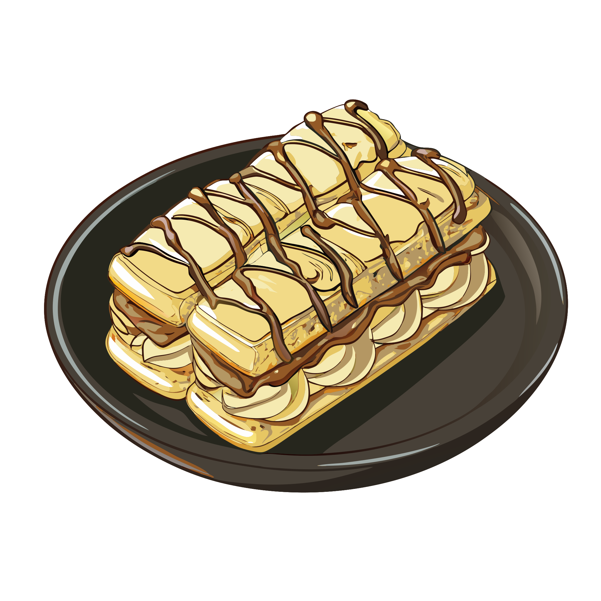 Mille-feuille (mille-feuille) is part of French regional dish icons. Classic and regional French dishes in a cohesive illustrated style.