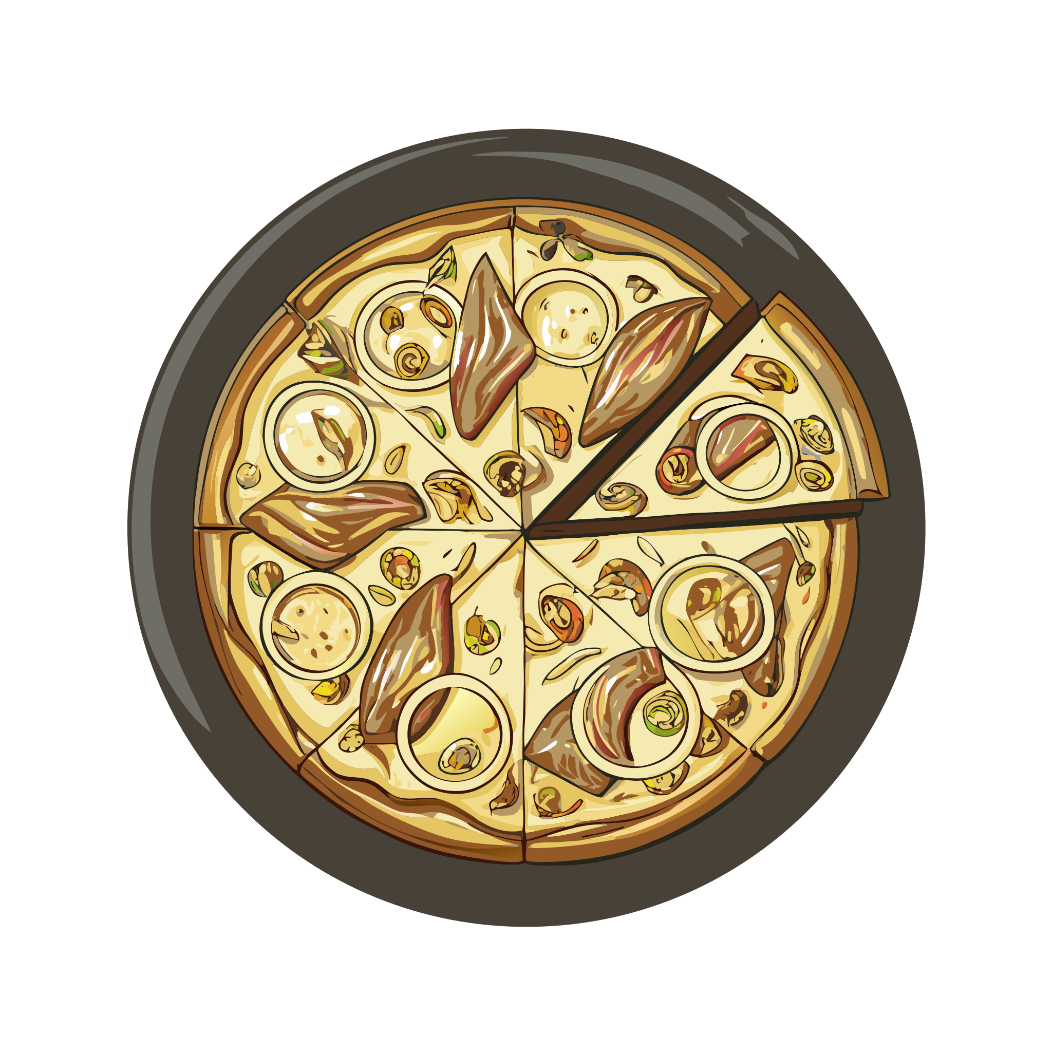 Tarte flambée (Flammekueche) is part of French regional dish icons. Classic and regional French dishes in a cohesive illustrated style.