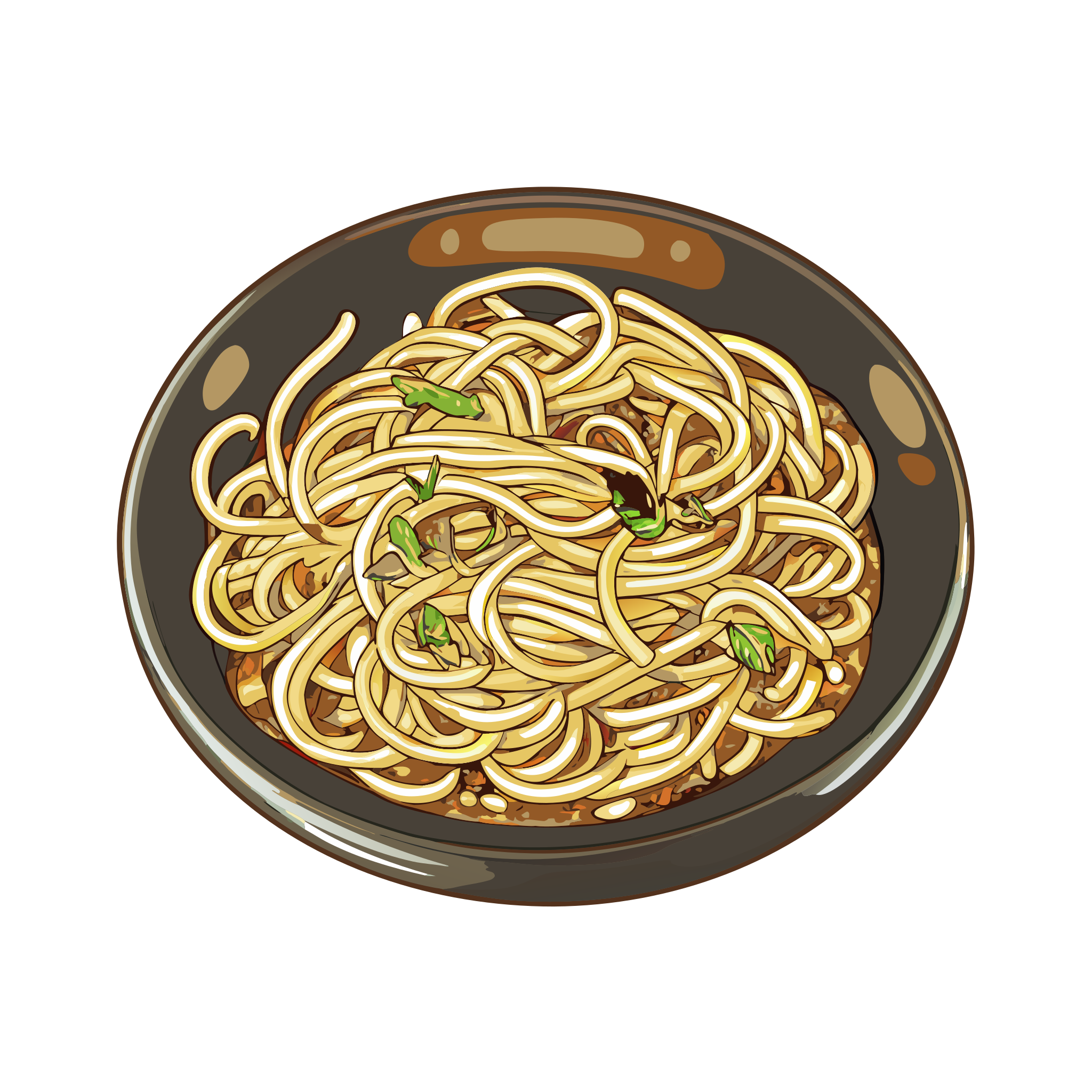 Pici (Tuscan hand-rolled pasta) is part of Italian regional dish icons. Traditional and regional Italian cuisine in a cohesive illustrated style.