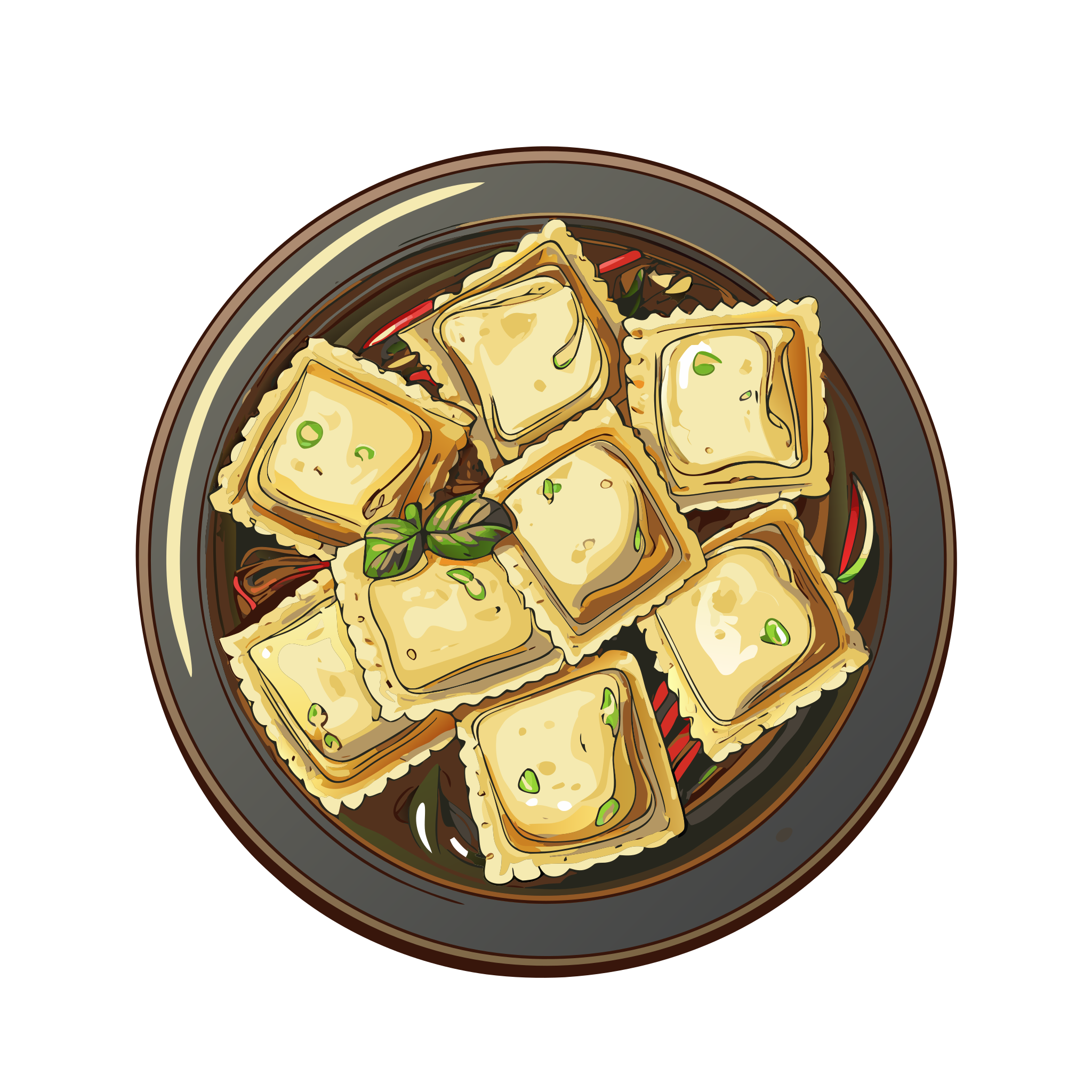 Ravioli (ravioli) is part of Italian regional dish icons. Traditional and regional Italian cuisine in a cohesive illustrated style.