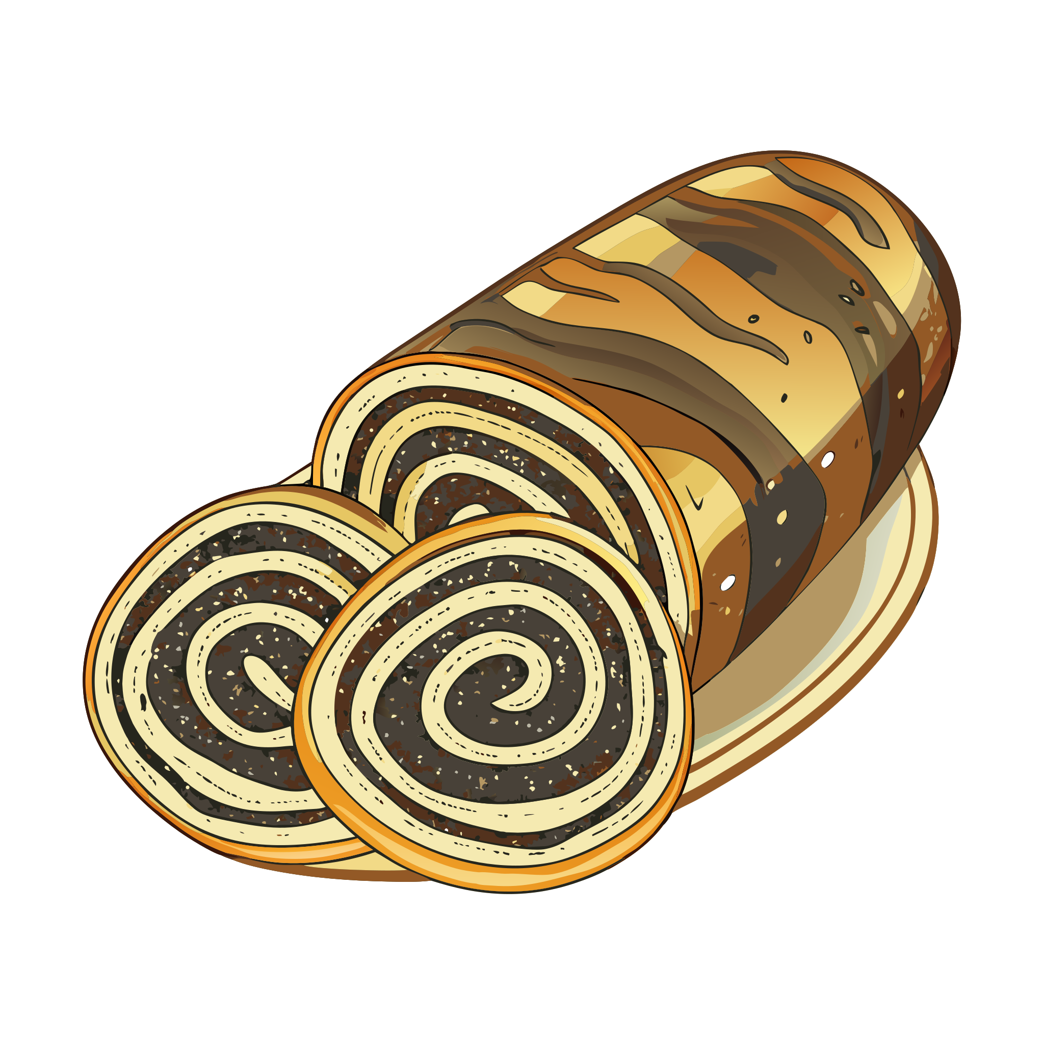 Makowiec (poppy seed roll) is part of Polish regional dish icons. Traditional and regional Polish cuisine in a cohesive illustrated style.