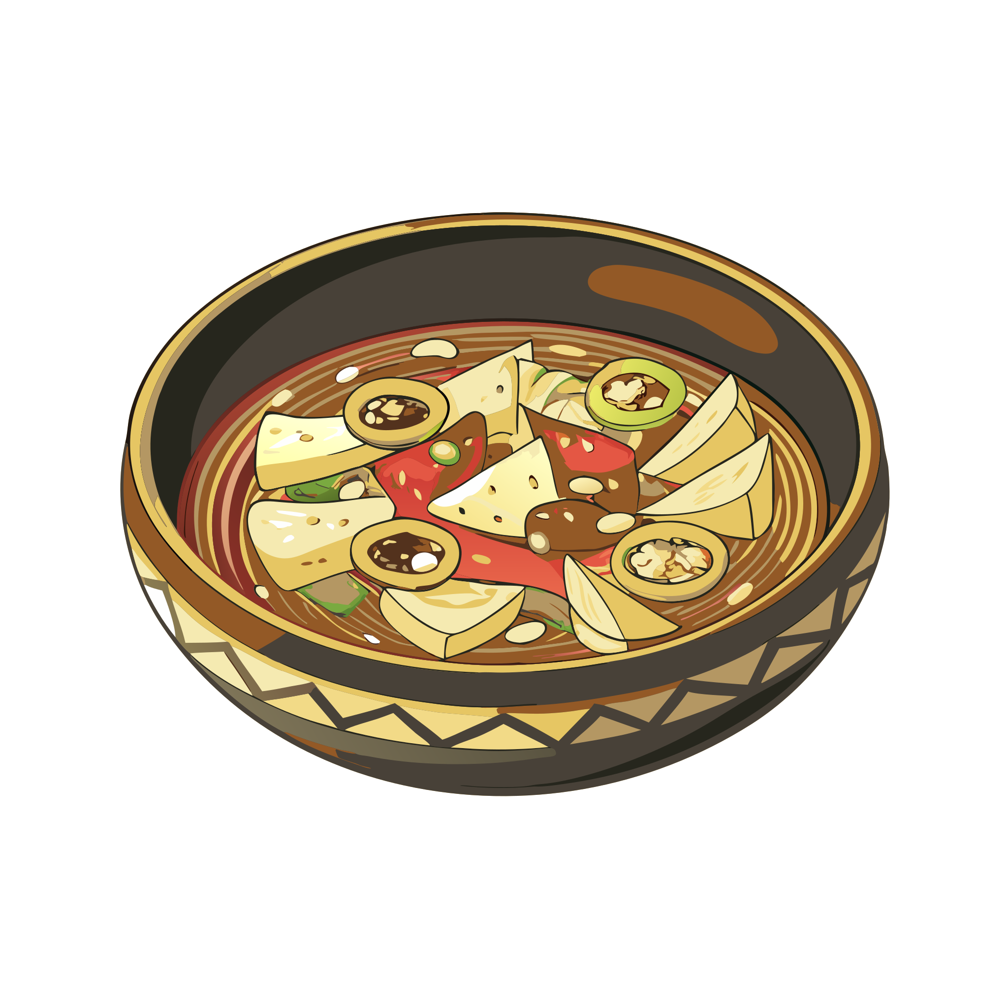 Gazpacho (cold tomato soup) is part of Spanish kitchen — regional dish icons. Tapas, rice dishes, and regional Spanish classics in one illustrated set.