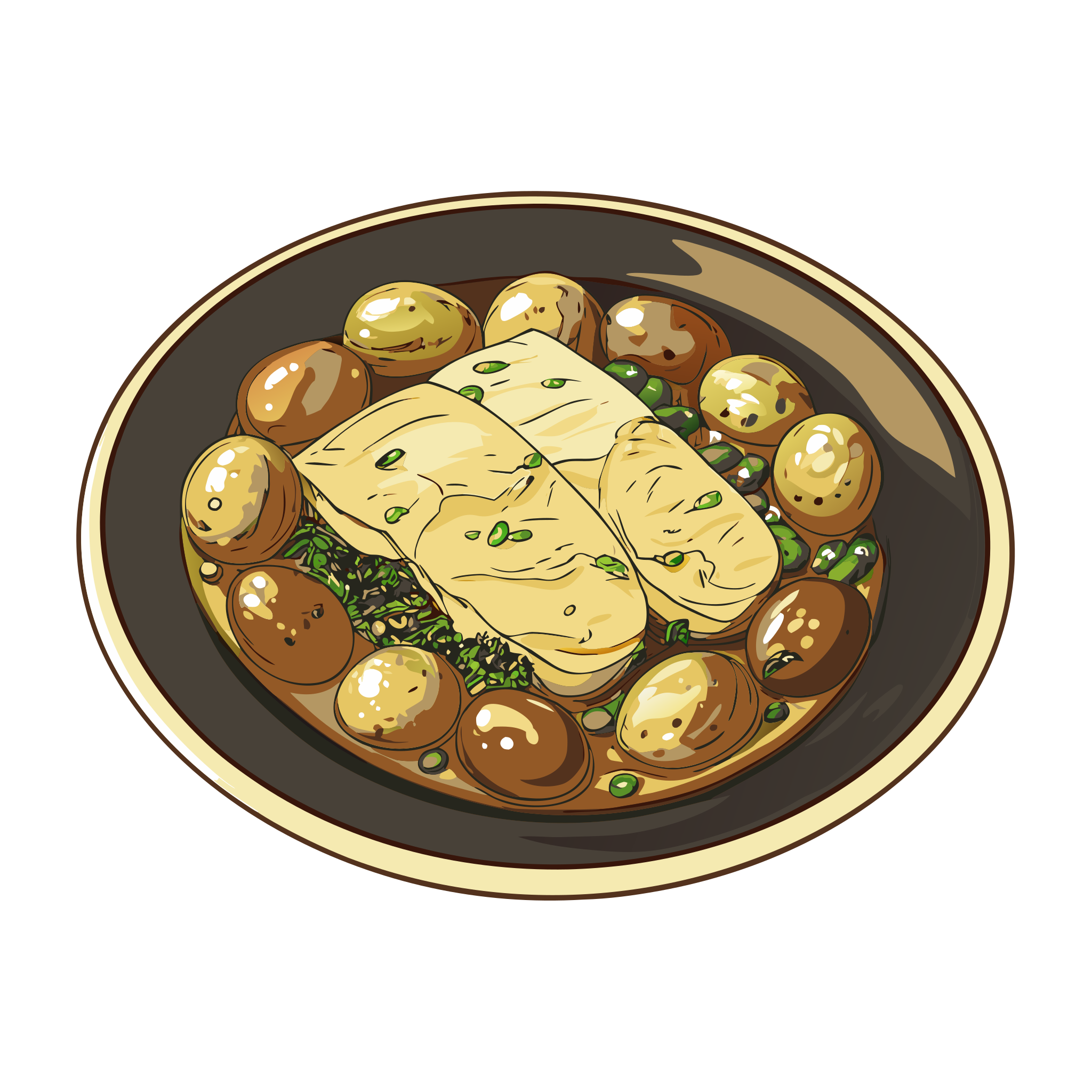 Merluza en salsa verde (hake in green sauce) — Spanish kitchen — regional dish icons
